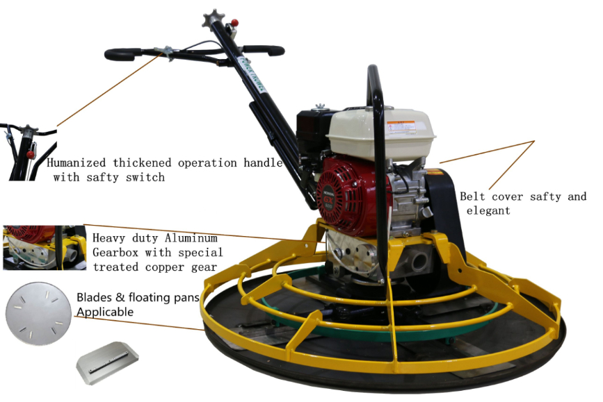 The power trowel also referred to as a troweling or finishing machine is used in the smoothing and finishing of concrete slab work. These machines may be hand operated or guided walk-behind, with gasoline engine. Some have three blades; some have four. Troweling diameters range from 24 inches to 48 inches. Riding models with multiple spider assemblies are also available. The question of what makes a best power trowel is not a simple question to answer. It covers a great deal of ground, but perhaps could be simplified somewhat by breaking the unit into four major parts that should be considered in purchasing: The engine; gear box and power take off; guard ring/spider; and handle.