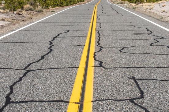 A hardened surface, like asphalt, that is spread over an area larger than about 100 sq ft of the earth's surface is subject to forming cracks, for a number of reasons: