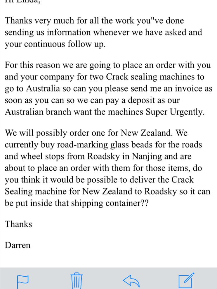 Road repair equipment, small crack sealing machine, model JHG-100 were delivered to New Zealand, and receive the good feedback from customer.