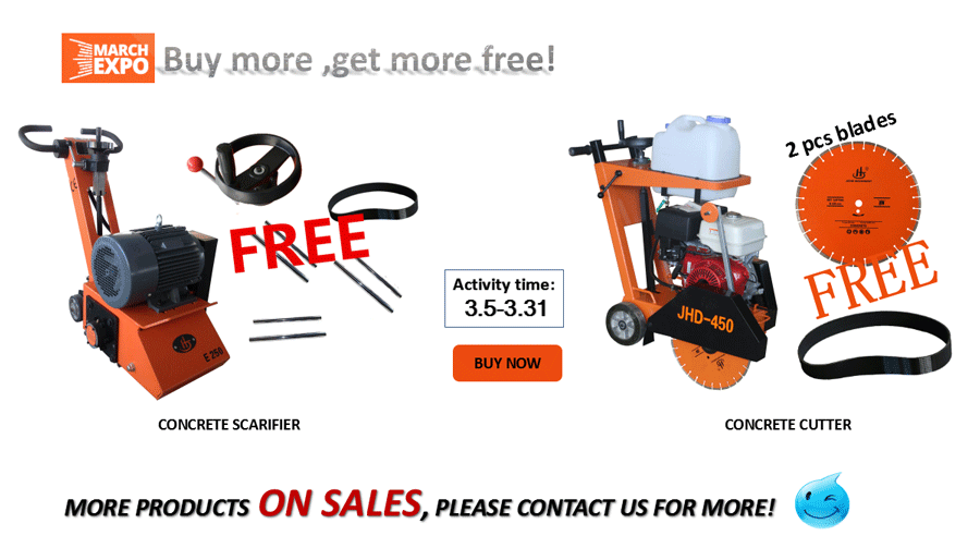 Buy 1 set JHE250E concrete scarifier , you will get FREE 6PCS blade shafts + 2PCS belts + 1 PCS handwheel.